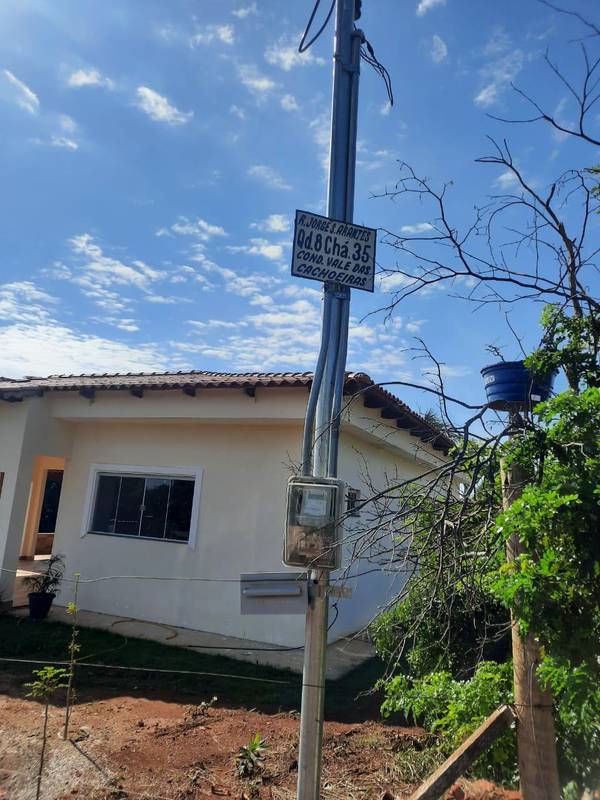 Chácara Condomínio Vale das cachoeiras muito verde e segurança com portaria e vigilância 24 hs, casa nova com 3 quartos sendo uma suíte com box vitraux, sala e cozinha estendida, hall de circulação, banheiro social ,pé direito interno de 3,00 mts na laje, garagem coberta para 2 veículos, área de serviço ampla, semi poço artesiano automático., Próximo a comércios, bancos, escolas, supermercados e panificadoras. WHATSAPP 62-39325500